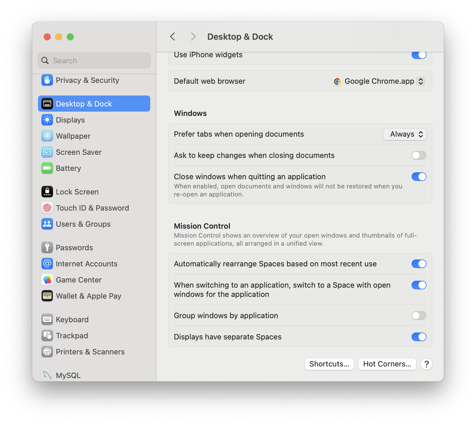 - System Settings > Desktop & Dock > Windows ๋ก ์ด๋